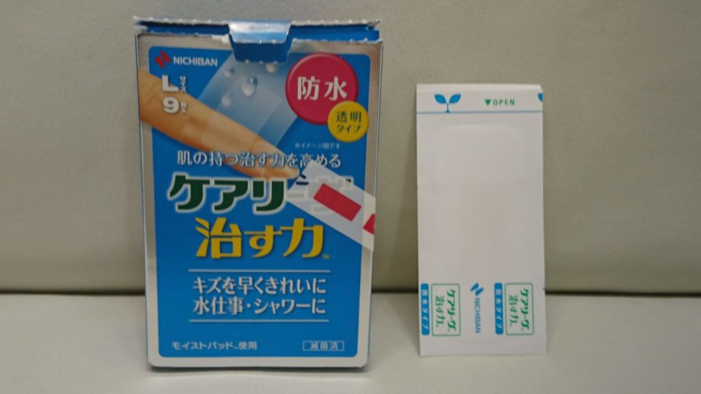 そのため、「水にあまり浸からないような場所の傷」や「小さめの傷」にはオススメだと思います。